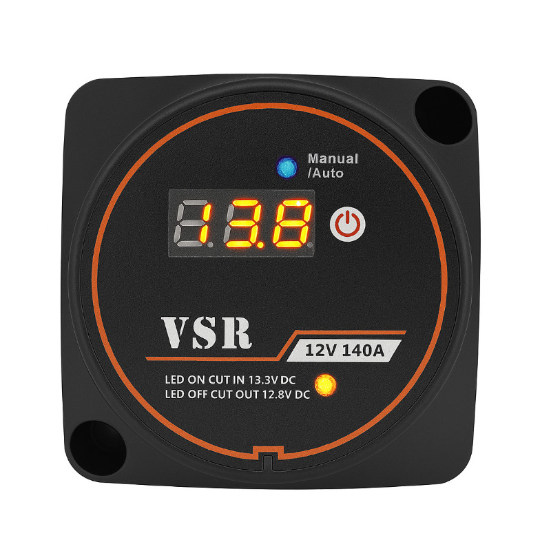 Izolator Baterii Solvian Smart 12V 140A to inteligentny przekaźnik napięciowy (VSR) z cyfrowym wyświetlaczem i wskaźnikami LED, który automatycznie rozdziela i łączy akumulatory w zależności od poziomu napięcia. Idealny do systemów fotowoltaicznych, kamperów, łodzi i pojazdów 12V, zapewnia bezpieczne ładowanie i ochronę przed rozładowaniem baterii pomocniczej.